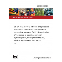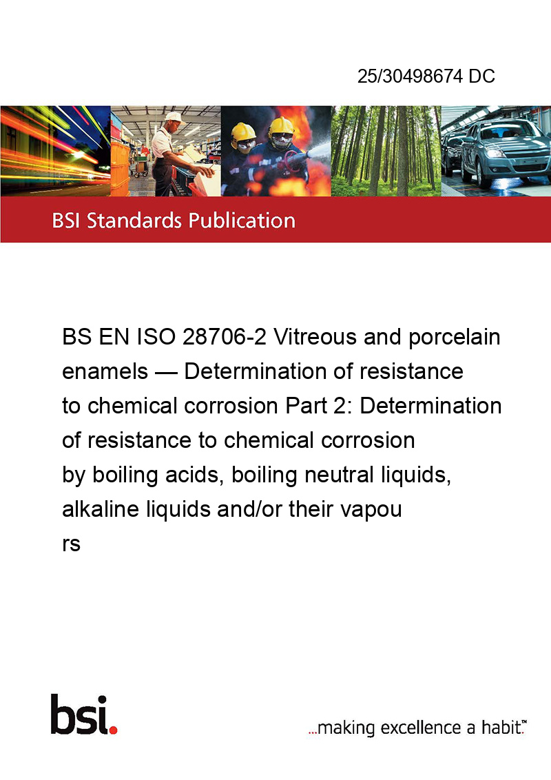 BS EN ISO 28706-2 Vitreous and porcelain enamels — Determination of resistance to chemical corrosion Part 2: Determination of resistance to chemical corrosion by boiling acids, boiling neutral liquids, alkaline liquids and/or their vapours