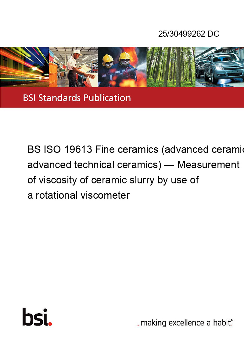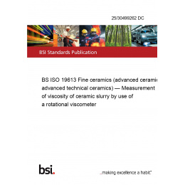 BS ISO 19613 Fine ceramics (advanced ceramics, advanced technical ceramics) — Measurement of viscosity of ceramic slurry by use of a rotational viscometer