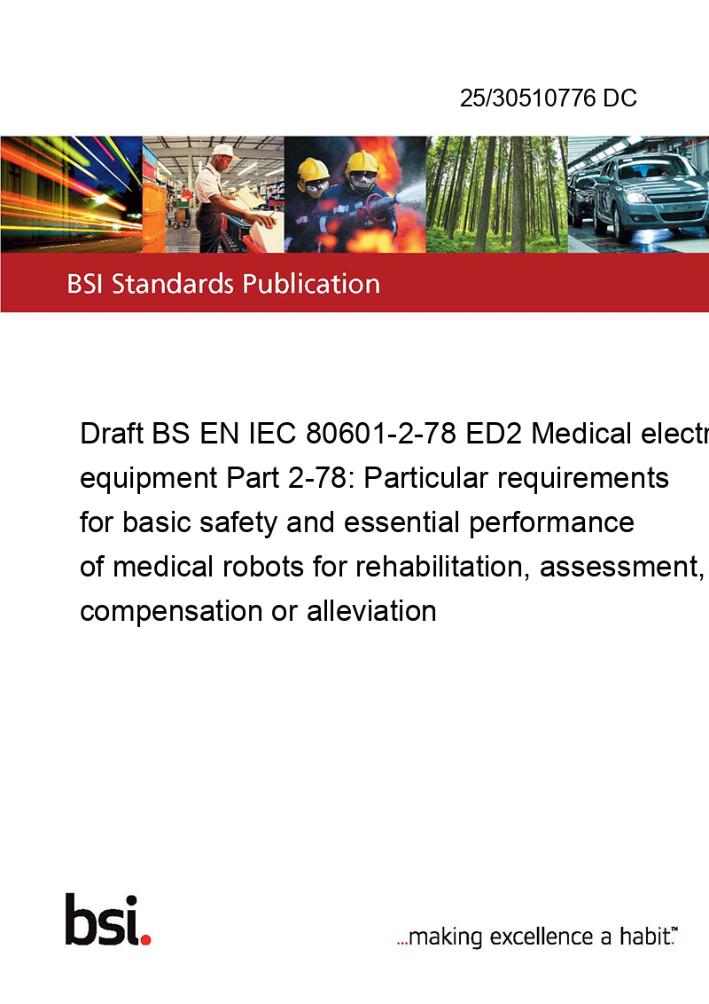 Draft BS EN IEC 80601-2-78 ED2 Medical electrical equipment Part 2-78: Particular requirements for basic safety and essential performance of medical robots for rehabilitation, assessment, compensation or alleviation