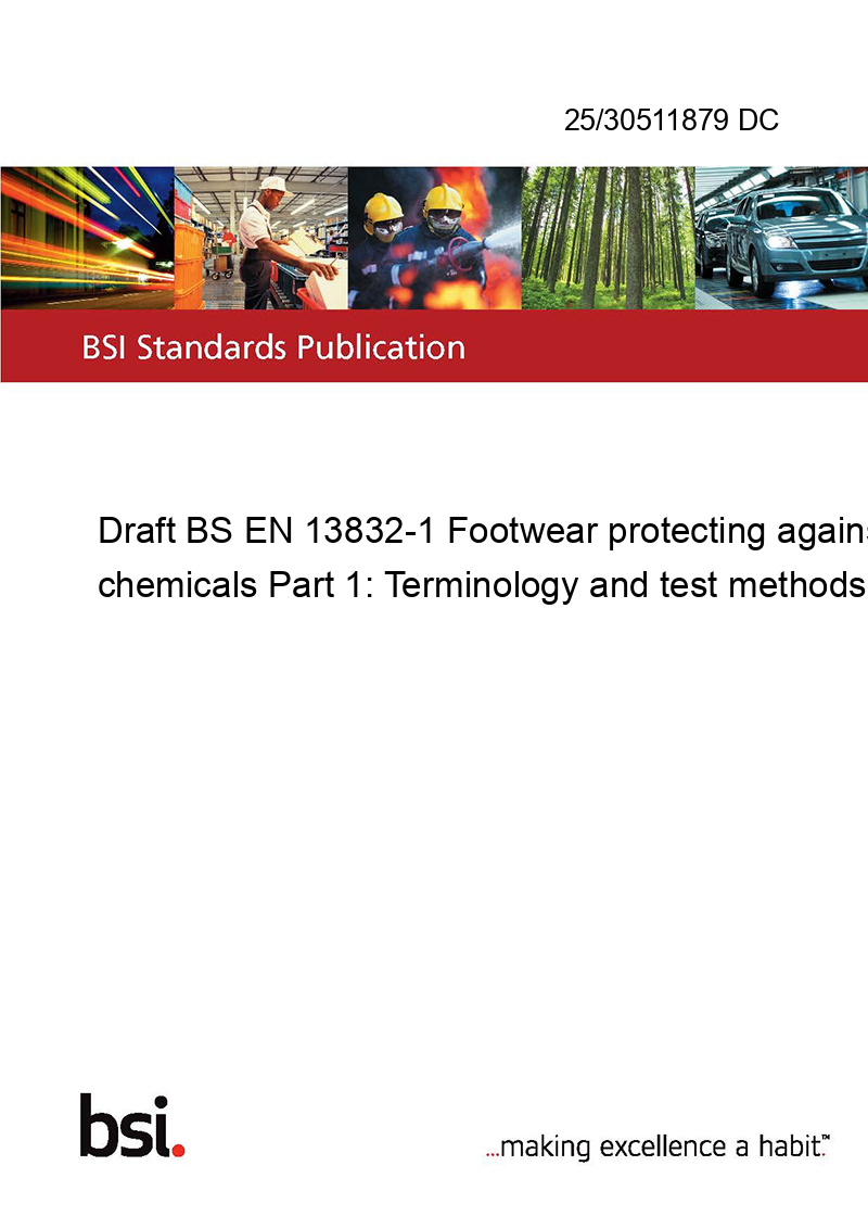 Draft BS EN 13832-1 Footwear protecting against chemicals Part 1: Terminology and test methods