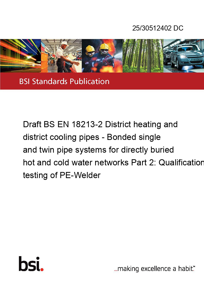 Draft BS EN 18213-2 District heating and district cooling pipes - Bonded single and twin pipe systems for directly buried hot and cold water networks Part 2: Qualification testing of PE-Welder