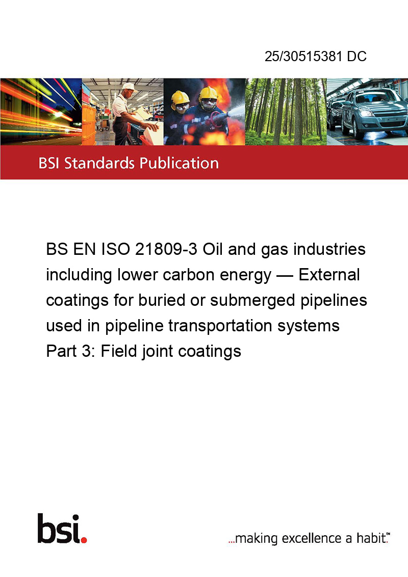 BS EN ISO 21809-3 Oil and gas industries including lower carbon energy — External coatings for buried or submerged pipelines used in pipeline transportation systems Part 3: Field joint coatings