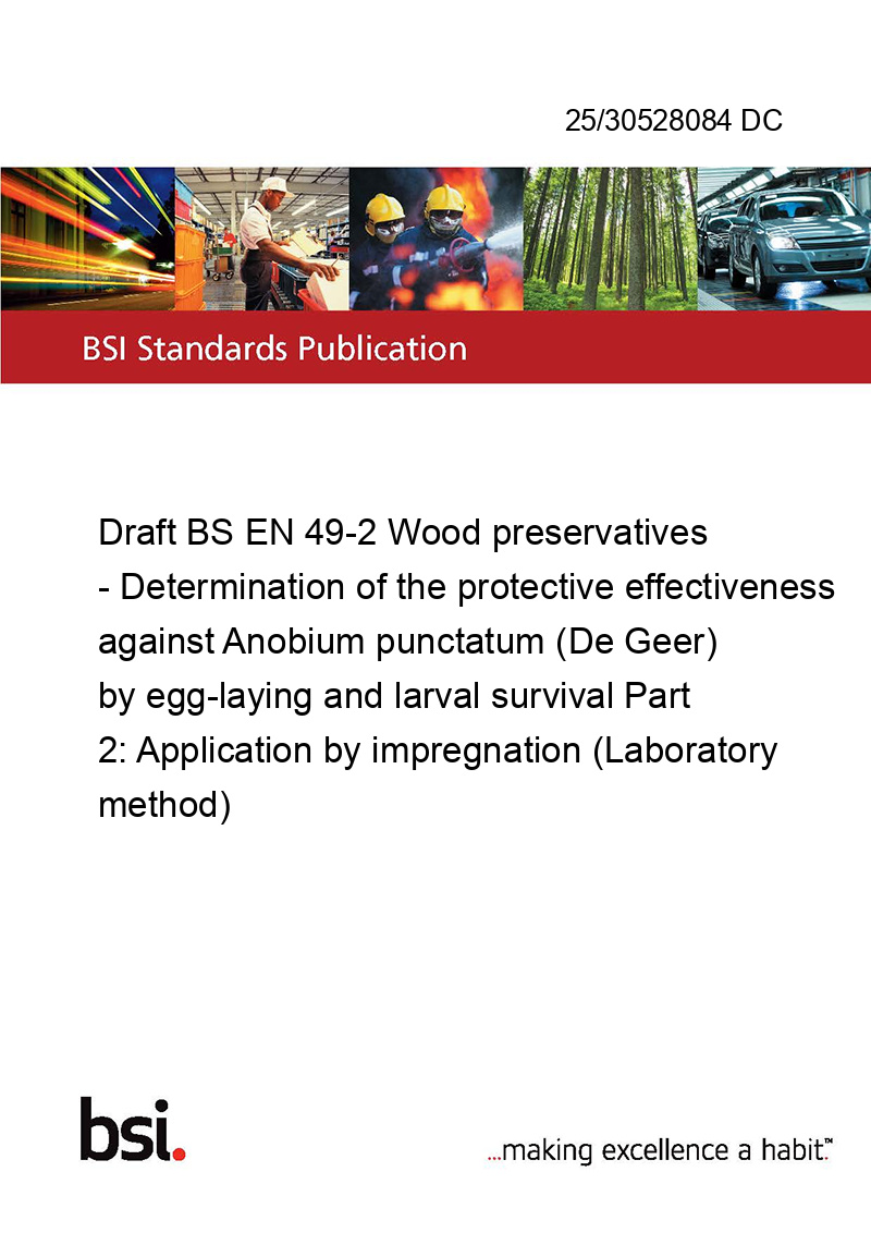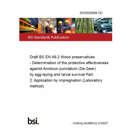 Draft BS EN 49-2 Wood preservatives - Determination of the protective effectiveness against Anobium punctatum (De Geer) by egg-laying and larval survival Part 2: Application by impregnation (Laboratory method)