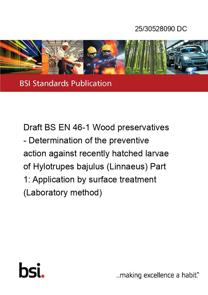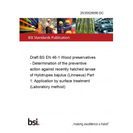 Draft BS EN 46-1 Wood preservatives - Determination of the preventive action against recently hatched larvae of Hylotrupes bajulus (Linnaeus) Part 1: Application by surface treatment (Laboratory method)
