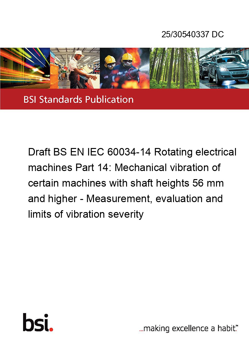 Draft BS EN IEC 60034-14 Rotating electrical machines Part 14: Mechanical vibration of certain machines with shaft heights 56 mm and higher - Measurement, evaluation and limits of vibration severity