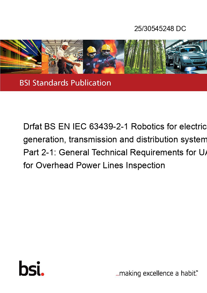 Drfat BS EN IEC 63439-2-1 Robotics for electricity generation, transmission and distribution systems Part 2-1: General Technical Requirements for UAS for Overhead Power Lines Inspection
