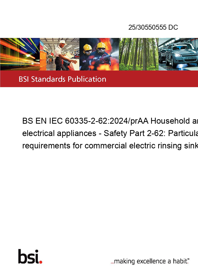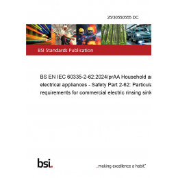 BS EN IEC 60335-2-62:2024/prAA Household and similar electrical appliances - Safety Part 2-62: Particular requirements for commercial electric rinsing sinks