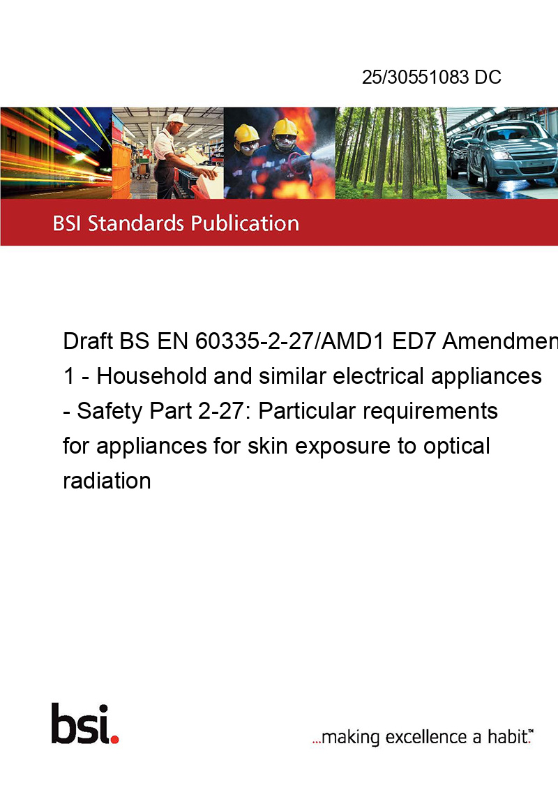 Draft BS EN 60335-2-27/AMD1 ED7 Amendment 1 - Household and similar electrical appliances - Safety Part 2-27: Particular requirements for appliances for skin exposure to optical radiation