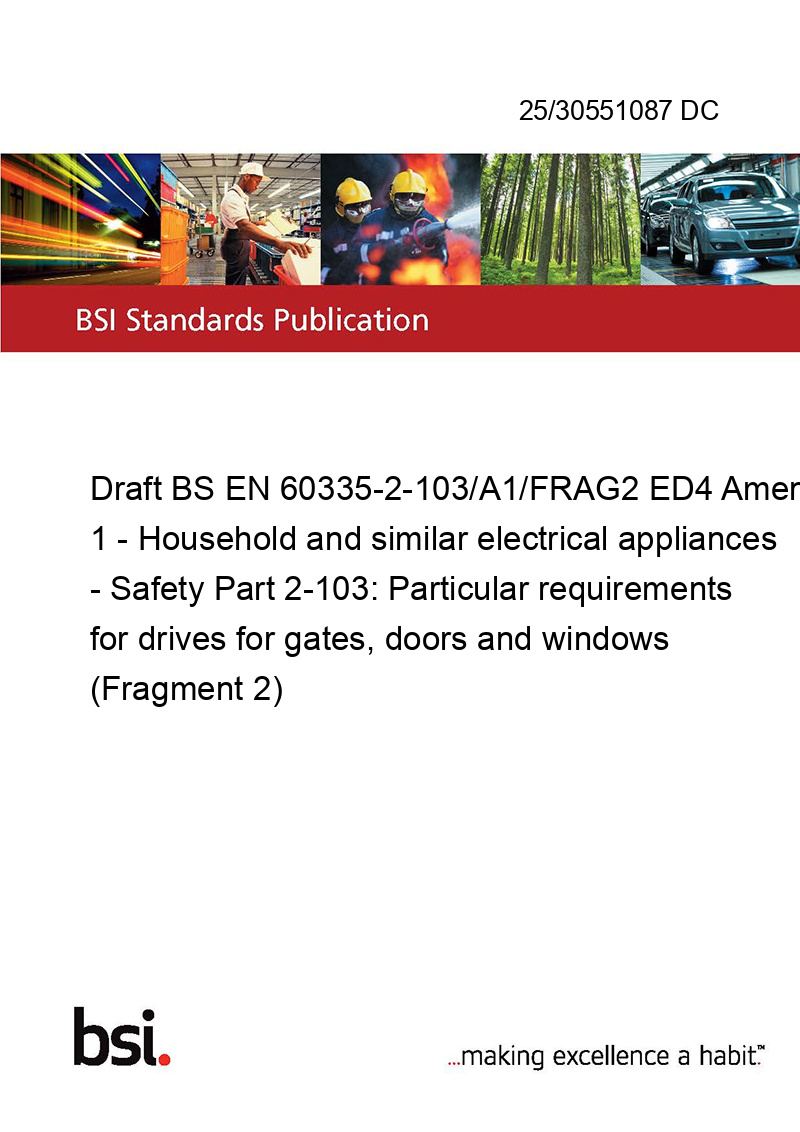 Draft BS EN 60335-2-103/A1/FRAG2 ED4 Amendment 1 - Household and similar electrical appliances - Safety Part 2-103: Particular requirements for drives for gates, doors and windows (Fragment 2)