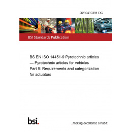 BS EN ISO 14451-9 Pyrotechnic articles — Pyrotechnic articles for vehicles Part 9: Requirements and categorization for actuators