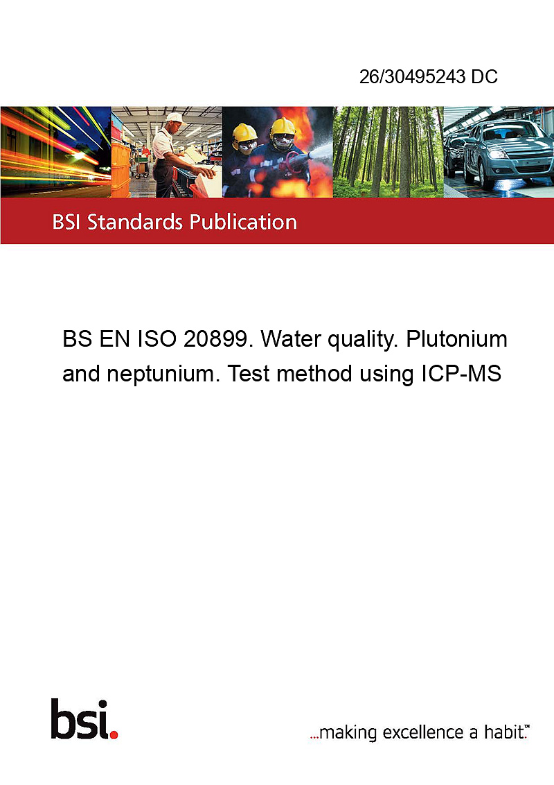 This standard 26/30495243 DC BS EN ISO 20899. Water quality. Plutonium and neptunium. Test method using ICP-MS is classified in these ICS categories: