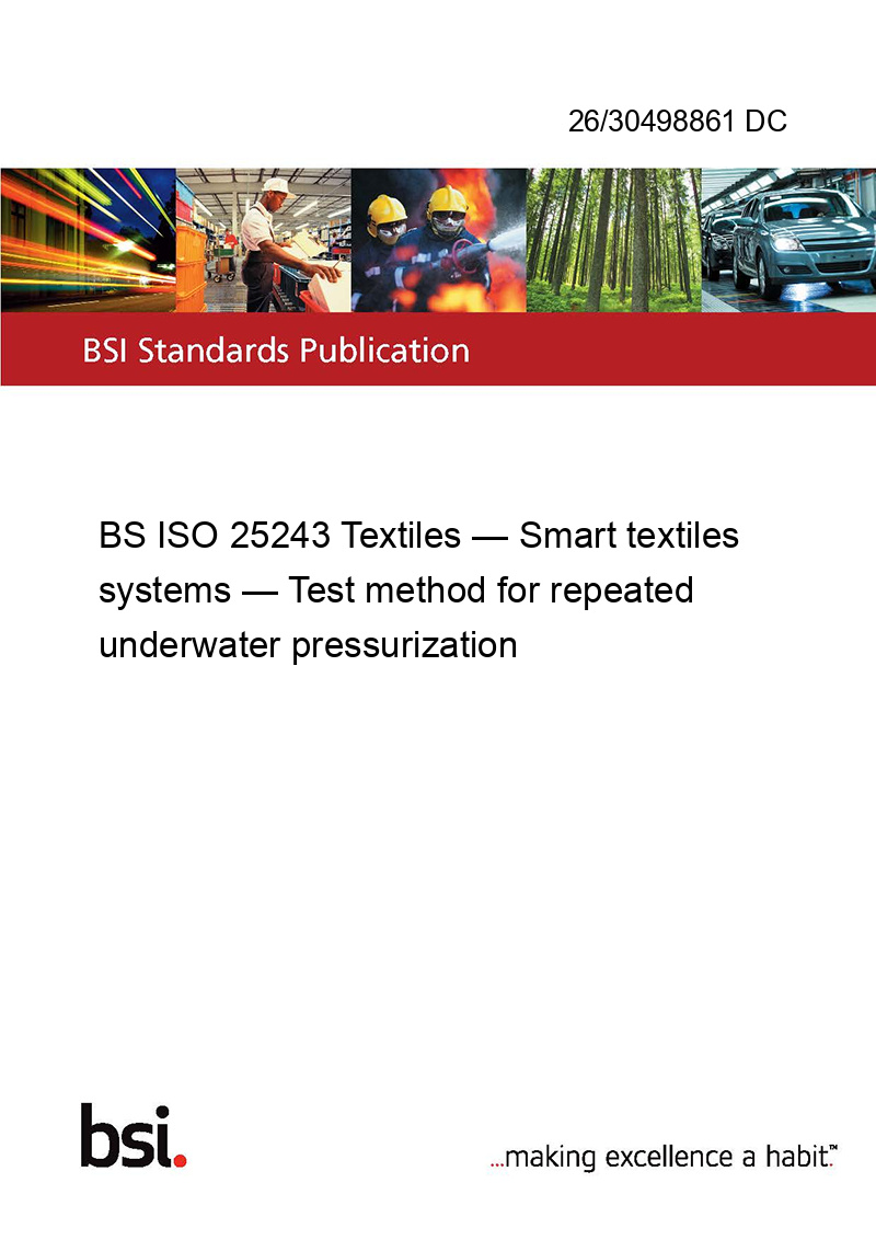 BS ISO 25243 Textiles — Smart textiles systems — Test method for repeated underwater pressurization