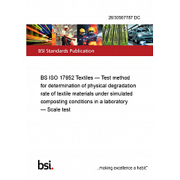This standard 26/30507787 DC BS ISO 17952 Textiles — Test method for determination of physical degradation rate of textile materials under simulated composting conditions in a laboratory — Scale test is classified in these ICS categories: