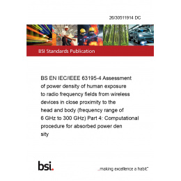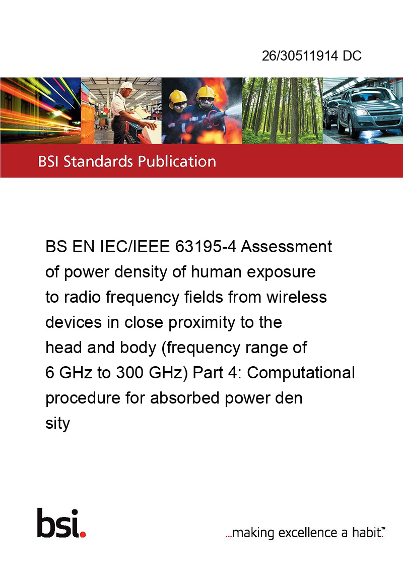 BS EN IEC/IEEE 63195-4 Assessment of power density of human exposure to radio frequency fields from wireless devices in close proximity to the head and body (frequency range of 6 GHz to 300 GHz) Part 4: Computational procedure for absorbed power density