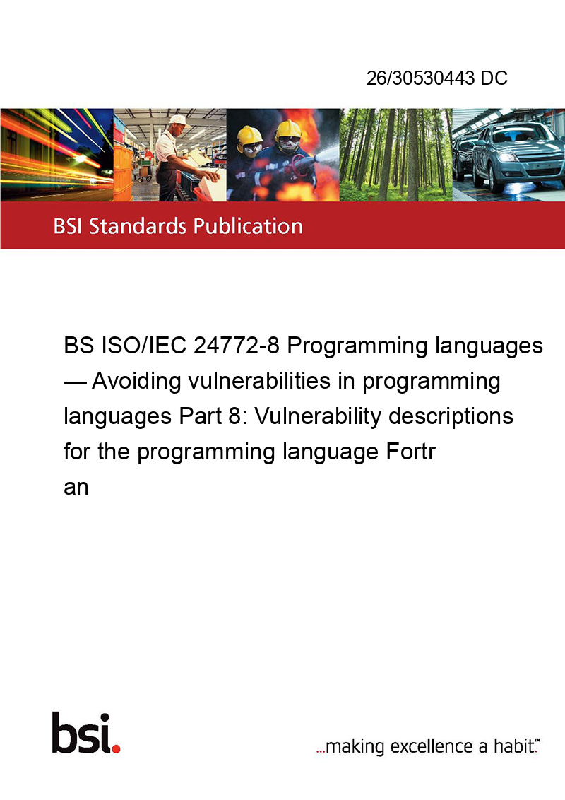 BS ISO/IEC 24772-8 Programming languages — Avoiding vulnerabilities in programming languages Part 8: Vulnerability descriptions for the programming language Fortran