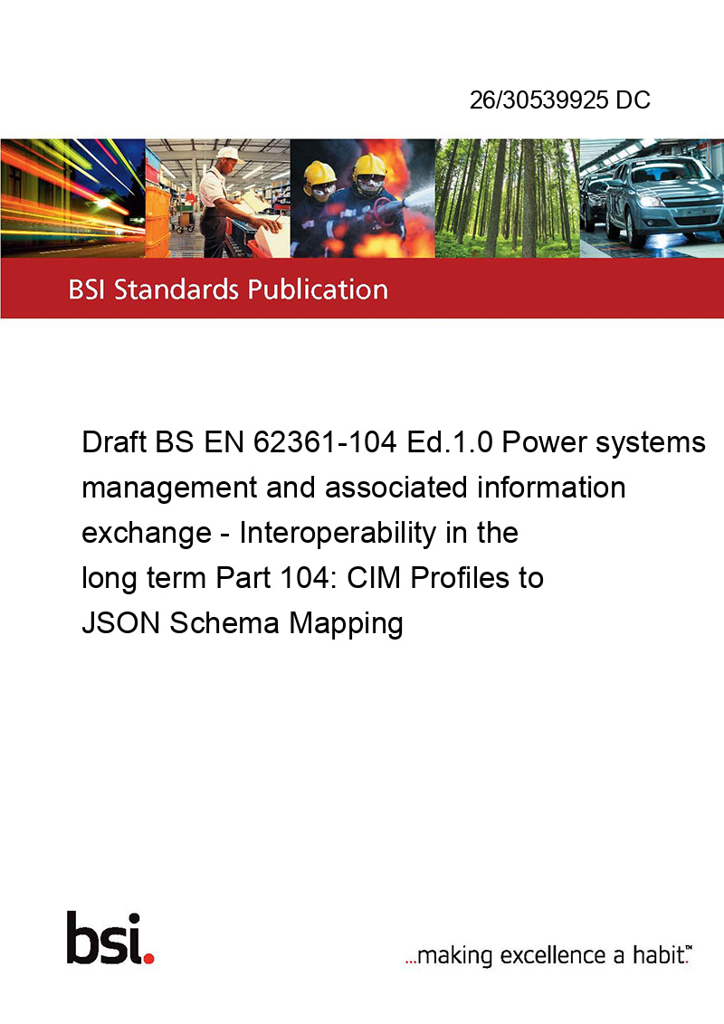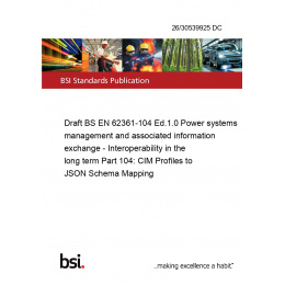 Draft BS EN 62361-104 Ed.1.0 Power systems management and associated information exchange - Interoperability in the long term Part 104: CIM Profiles to JSON Schema Mapping
