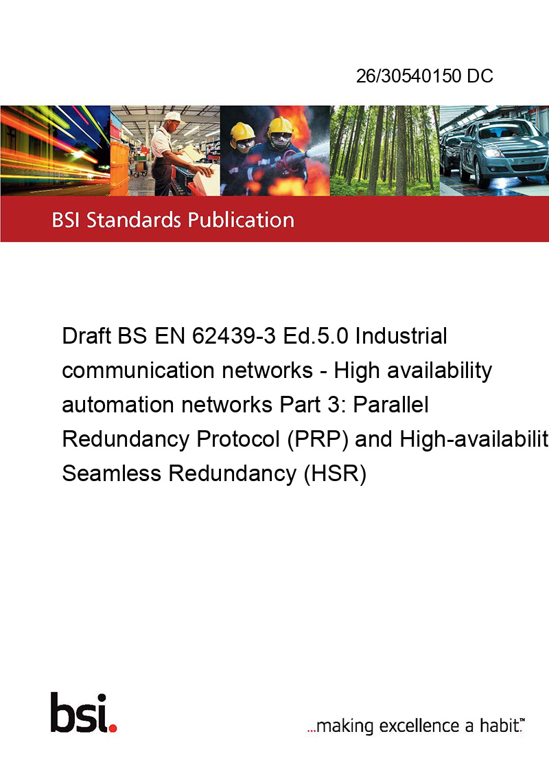 Draft BS EN 62439-3 Ed.5.0 Industrial communication networks - High availability automation networks Part 3: Parallel Redundancy Protocol (PRP) and High-availability Seamless Redundancy (HSR)
