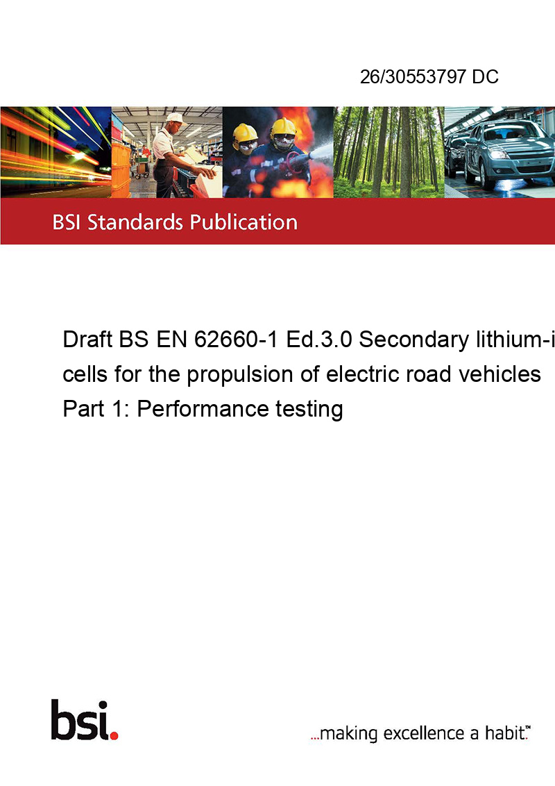Draft BS EN 62660-1 Ed.3.0 Secondary lithium-ion cells for the propulsion of electric road vehicles Part 1: Performance testing