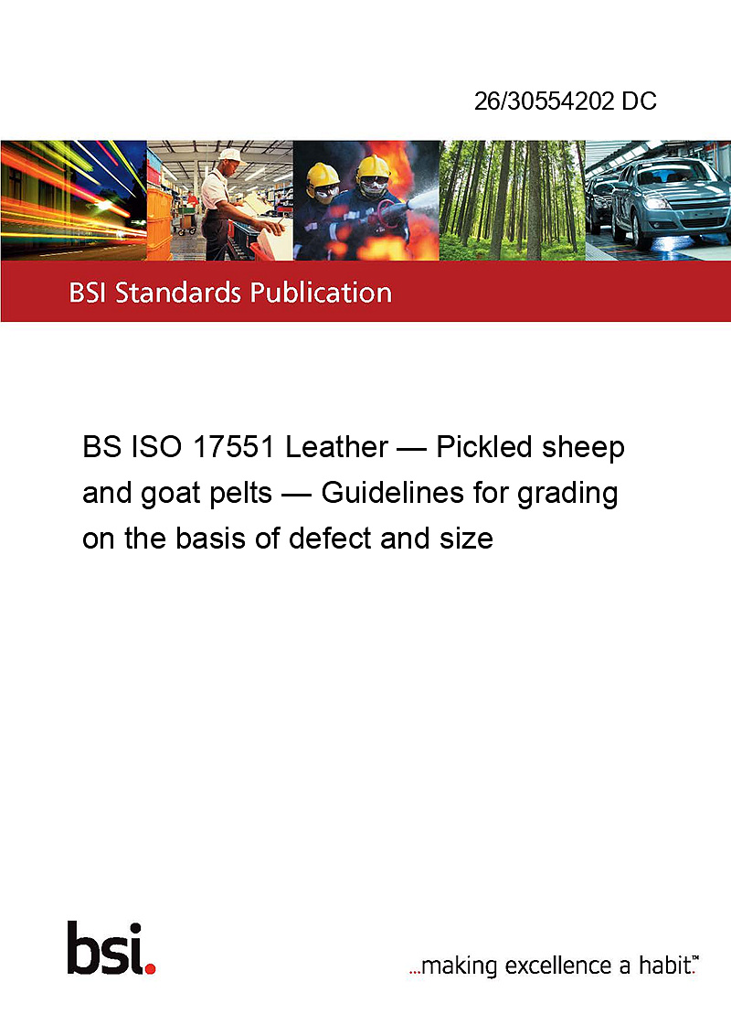 BS ISO 17551 Leather — Pickled sheep and goat pelts — Guidelines for grading on the basis of defect and size