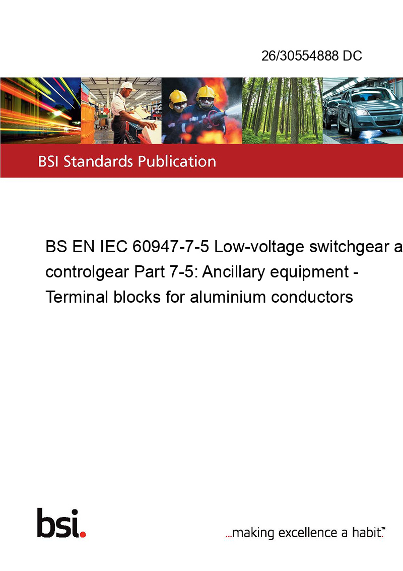 BS EN IEC 60947-7-5 Low-voltage switchgear and controlgear Part 7-5: Ancillary equipment - Terminal blocks for aluminium conductors