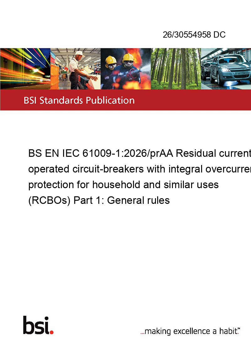 26/30554958 DC BS EN IEC 61009-1:2026/prAA Residual current operated circuit-breakers with integral overcurrent protection for household and similar uses (RCBOs) Part 1: General rules
