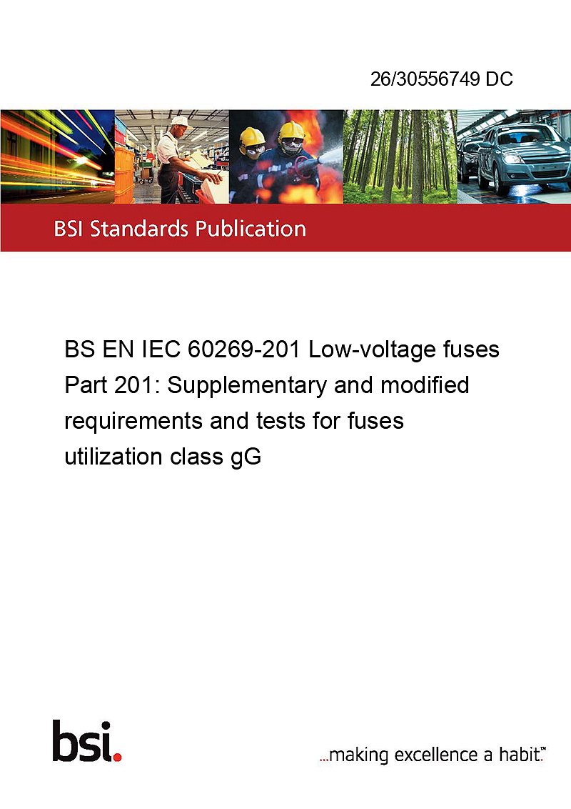 BS EN IEC 60269-201 Low-voltage fuses Part 201: Supplementary and modified requirements and tests for fuses utilization class gG