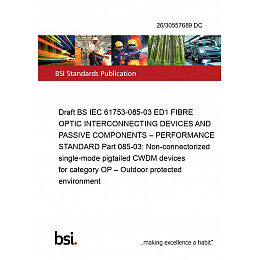 This standard 26/30557689 DC Draft BS IEC 61753-085-03 ED1 FIBRE OPTIC INTERCONNECTING DEVICES AND PASSIVE COMPONENTS – PERFORMANCE STANDARD is classified in these ICS categories: