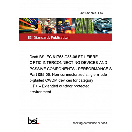 This standard 26/30557690 DC Draft BS IEC 61753-085-06 ED1 FIBRE OPTIC INTERCONNECTING DEVICES AND PASSIVE COMPONENTS - PERFORMANCE STANDARD is classified in these ICS categories: