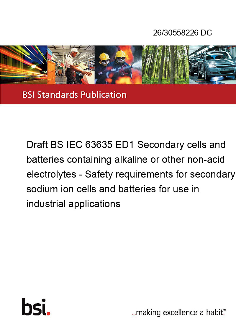 Draft BS IEC 63635 ED1 Secondary cells and batteries containing alkaline or other non-acid electrolytes - Safety requirements for secondary sodium ion cells and batteries for use in industrial applications
