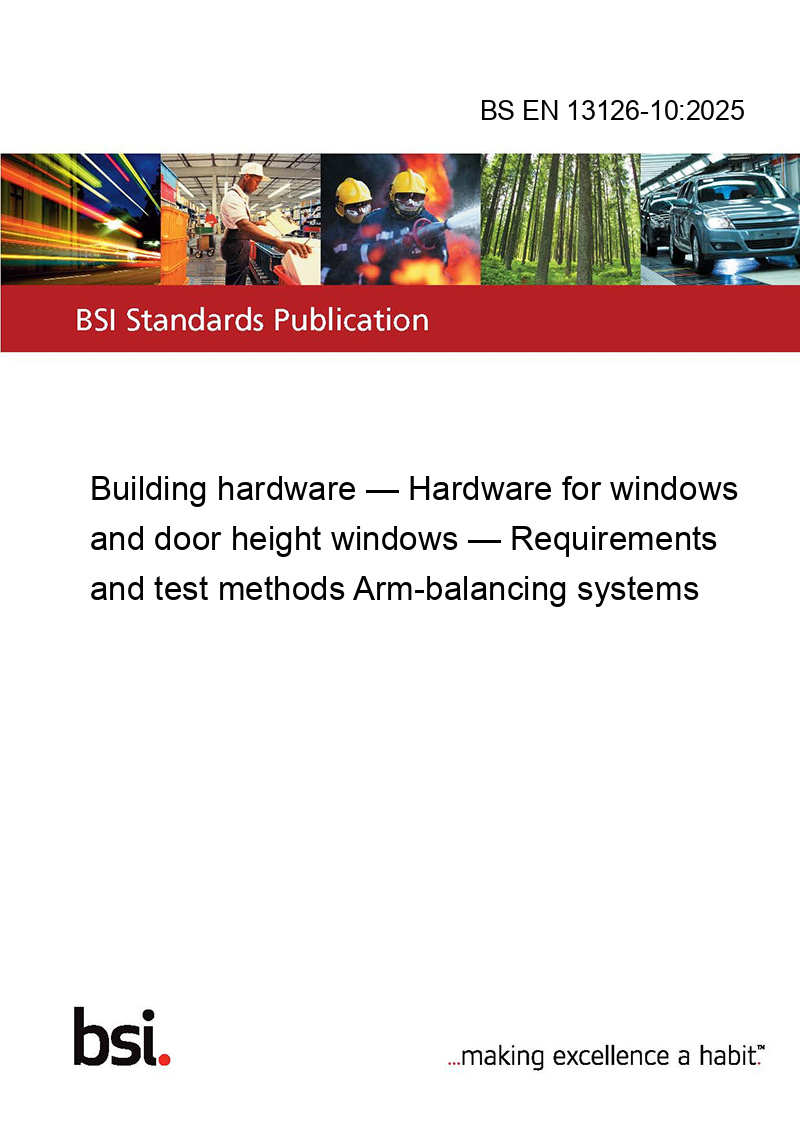 >BS EN 13126-10:2025 Building hardware — Hardware for windows and door height windows — Requirements and test methods Arm-balancing systems