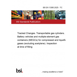 This standard BS EN 13385:2025 - TC Tracked Changes. Transportable gas cylinders. Battery vehicles and multiple-element gas containers (MEGCs) for compressed and liquefied gases (excluding acetylene). Inspection at time of filling is classified in these ICS categories: