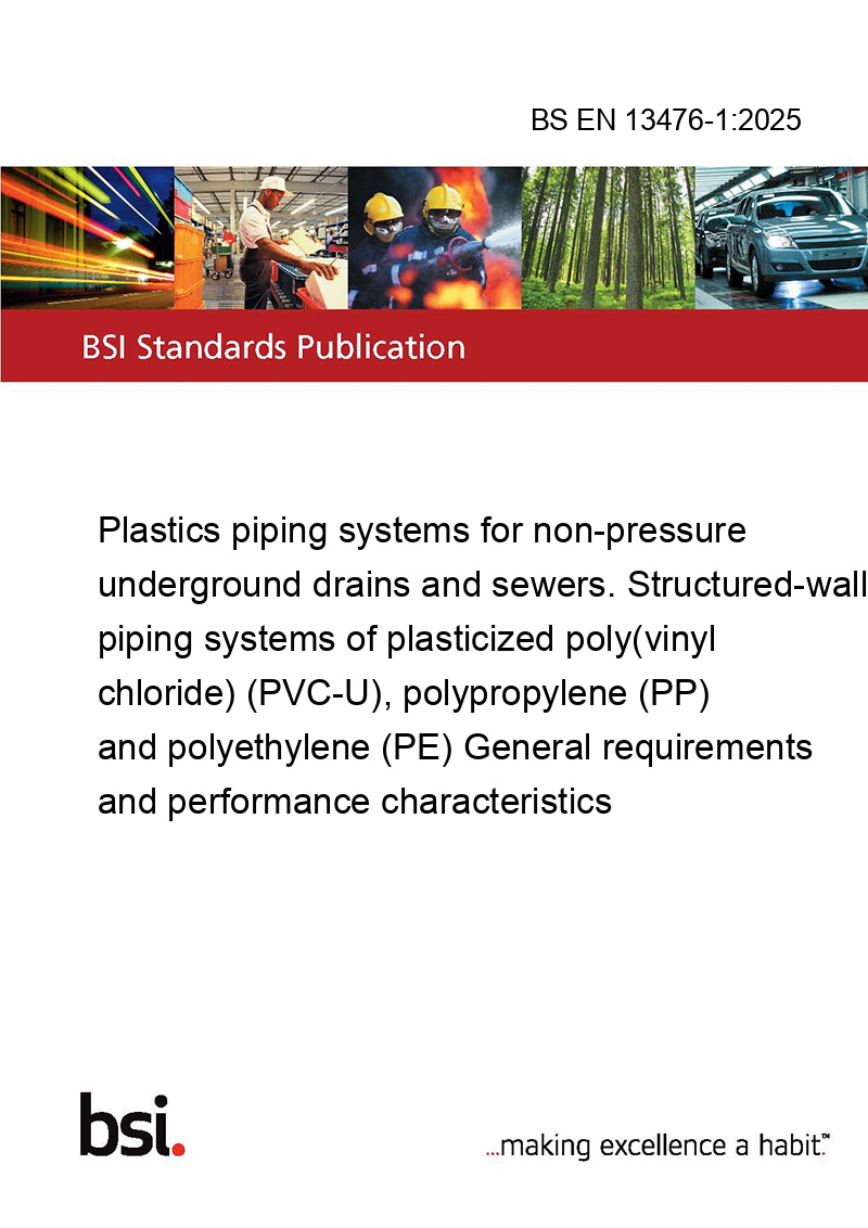 >BS EN 13476-1:2025 Plastics piping systems for non-pressure underground drains and sewers. Structured-wall piping systems of plasticized poly(vinyl chloride) (PVC-U), polypropylene (PP) and polyethylene (PE) General requirements and performance characteristics