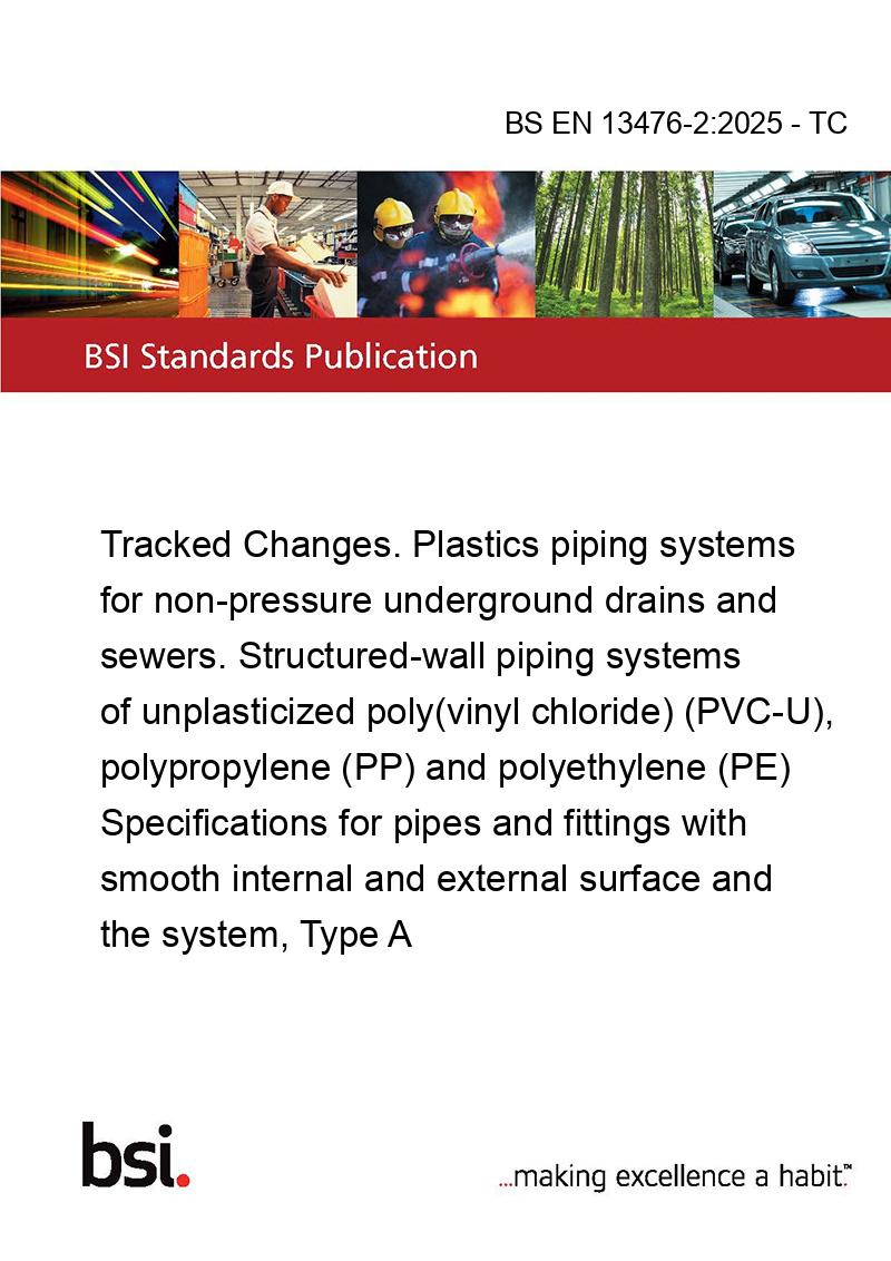 Tracked Changes. Plastics piping systems for non-pressure underground drains and sewers. Structured-wall piping systems of unplasticized poly(vinyl chloride) (PVC-U), polypropylene (PP) and polyethylene (PE) Specifications for pipes and fittings with smooth internal and external surface and the system, Type A