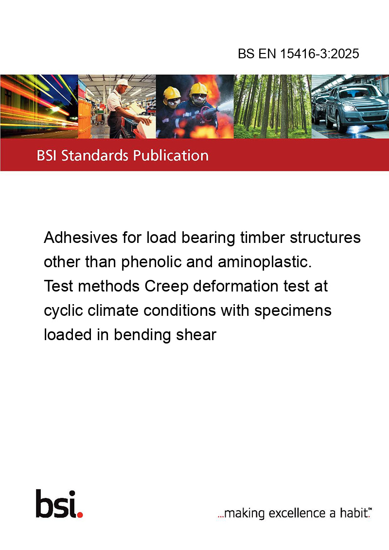 This standard BS EN 15416-3:2025 Adhesives for load bearing timber structures other than phenolic and aminoplastic. Test methods is classified in these ICS categories: