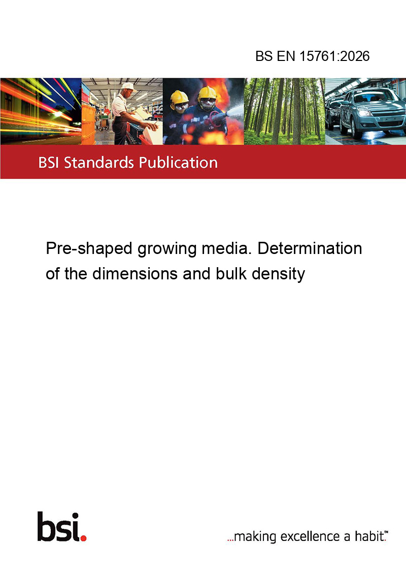 This standard BS EN 15761:2026 Pre-shaped growing media. Determination of the dimensions and bulk density is classified in these ICS categories: