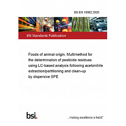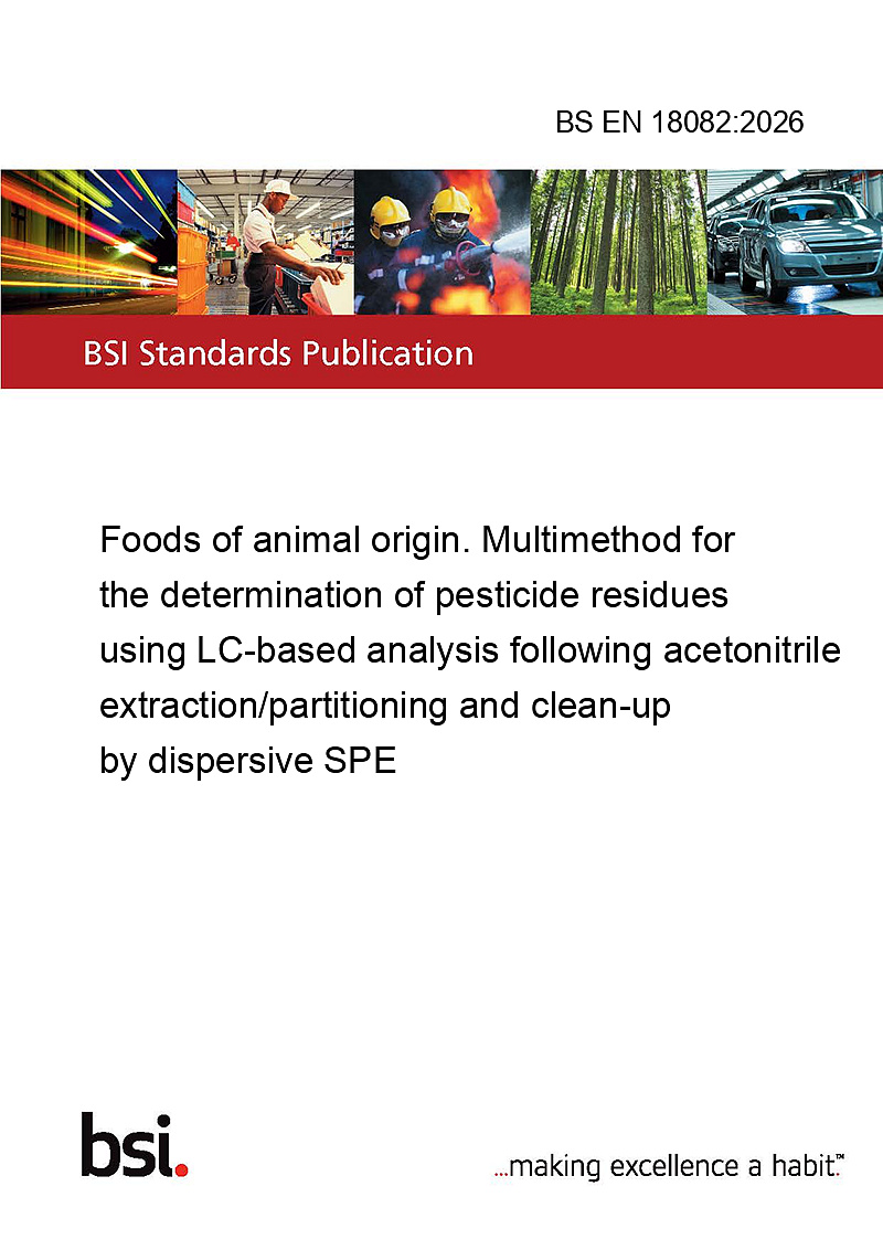 This standard BS EN 18082:2026 Foods of animal origin. Multimethod for the determination of pesticide residues using LC-based analysis following acetonitrile extraction/partitioning and clean-up by dispersive SPE is classified in these ICS categories: