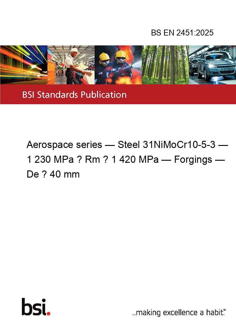 This standard BS EN 2451:2025 Aerospace series — Steel 31NiMoCr10-5-3 — 1 230 MPa ? Rm ? 1 420 MPa — Forgings — De ? 40 mm is classified in these ICS categories: