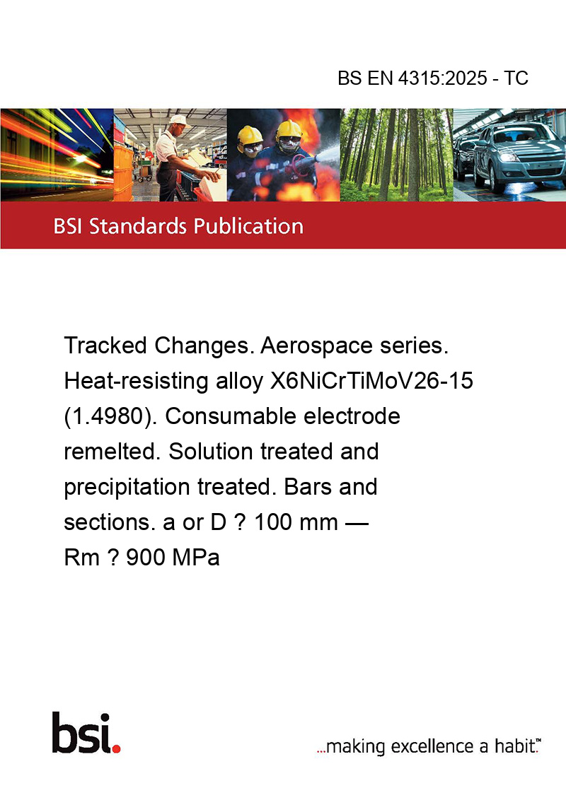 This standard BS EN 4315:2025 - TC Tracked Changes. Aerospace series. Heat-resisting alloy X6NiCrTiMoV26-15 (1.4980). Consumable electrode remelted. Solution treated and precipitation treated. Bars and sections. a or D ? 100 mm — Rm ? 900 MPa is classified in these ICS categories:
