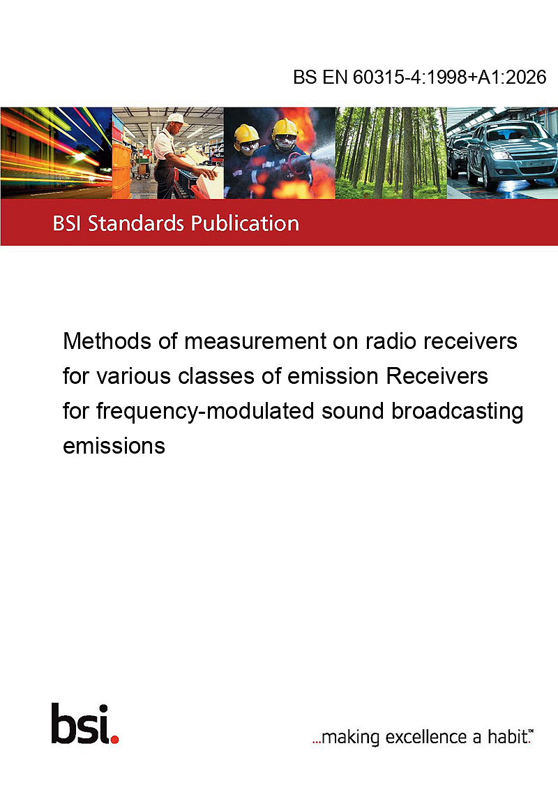 This standard BS EN 60315-4:1998+A1:2026 Methods of measurement on radio receivers for various classes of emission is classified in these ICS categories: