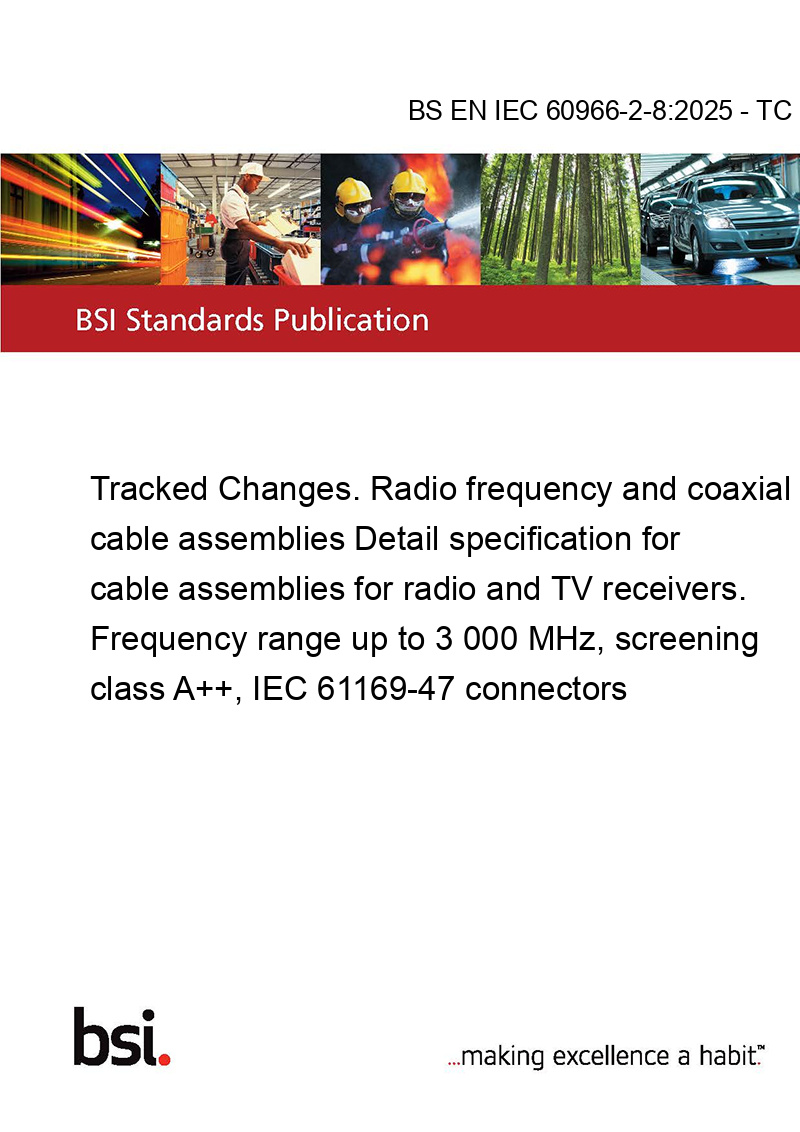 This standard BS EN IEC 60966-2-8:2025 - TC Tracked Changes. Radio frequency and coaxial cable assemblies is classified in these ICS categories: