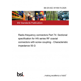 >BS EN IEC 61169-74:2025 Radio-frequency connectors Part 74: Sectional specification for HN series RF coaxial connectors with screw coupling - Characteristic impedance 50 Ω
