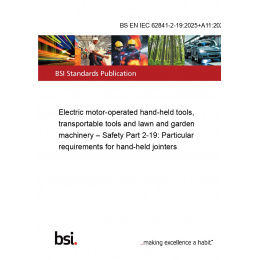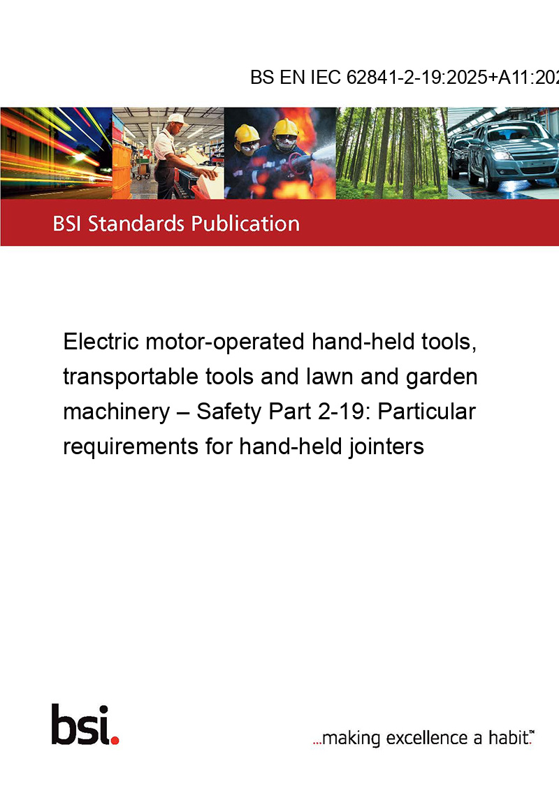 This standard BS EN IEC 62841-2-19:2025+A11:2025 Electric motor-operated hand-held tools, transportable tools and lawn and garden machinery – Safety is classified in these ICS categories: