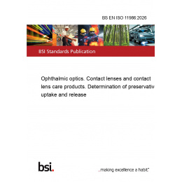 This standard BS EN ISO 11986:2026 Ophthalmic optics. Contact lenses and contact lens care products. Determination of preservative uptake and release is classified in these ICS categories: