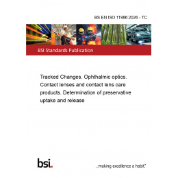 This standard BS EN ISO 11986:2026 - TC Tracked Changes. Ophthalmic optics. Contact lenses and contact lens care products. Determination of preservative uptake and release is classified in these ICS categories: