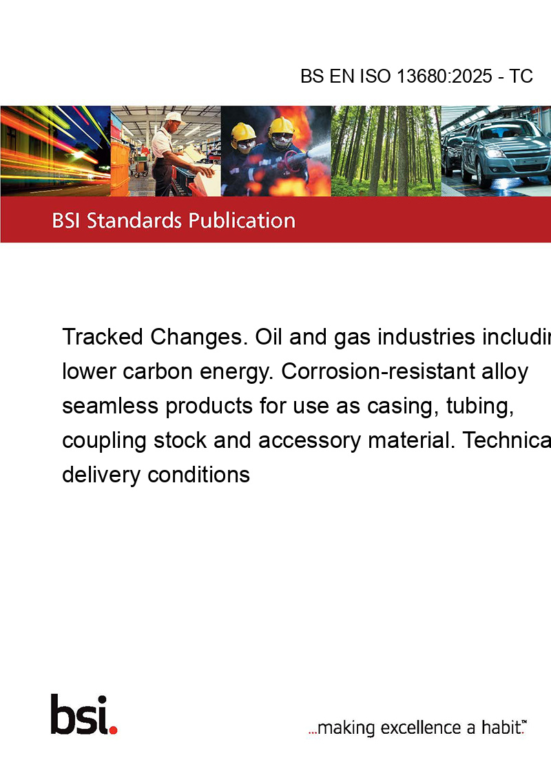 This standard BS EN ISO 13680:2025 - TC Tracked Changes. Oil and gas industries including lower carbon energy. Corrosion-resistant alloy seamless products for use as casing, tubing, coupling stock and accessory material. Technical delivery conditions is classified in these ICS categories: