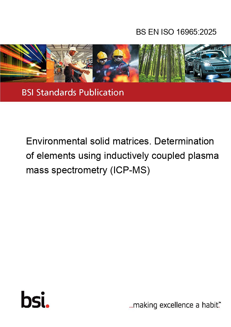 This standard BS EN ISO 16965:2025 Environmental solid matrices. Determination of elements using inductively coupled plasma mass spectrometry (ICP-MS) is classified in these ICS categories: