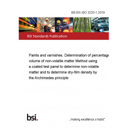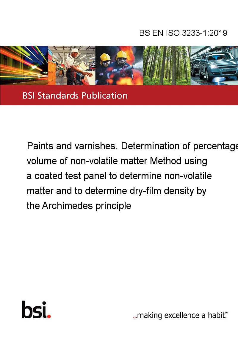 This document specifies a method for determining the non-volatile matter by volume (NVV) of coating materials and related products by measuring the density of a dried coating for any specified temperature range and period of drying or curing. This method determines the non-volatile matter immediately after application.