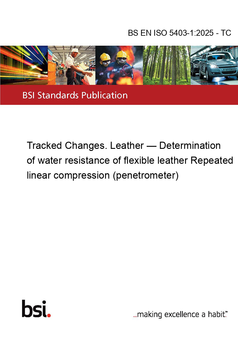 This standard BS EN ISO 5403-1:2025 - TC Tracked Changes. Leather — Determination of water resistance of flexible leather is classified in these ICS categories: