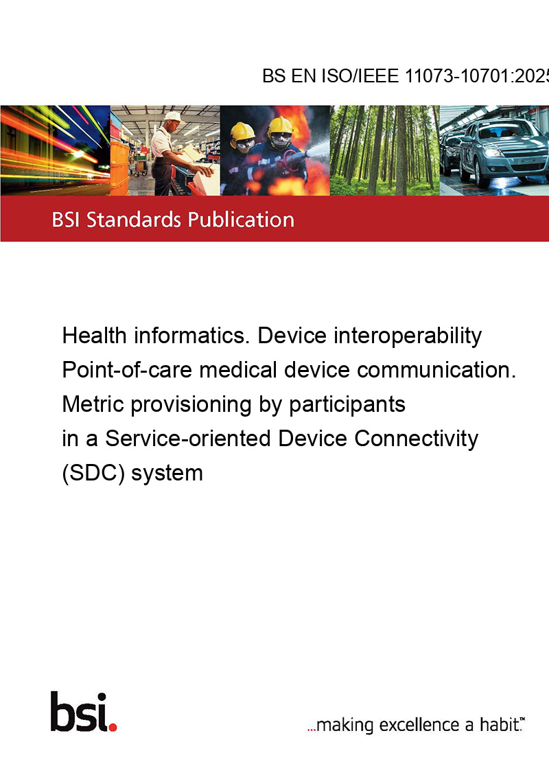 Health informatics. Device interoperability Point-of-care medical device communication. Metric provisioning by participants in a Service-oriented Device Connectivity (SDC) system
