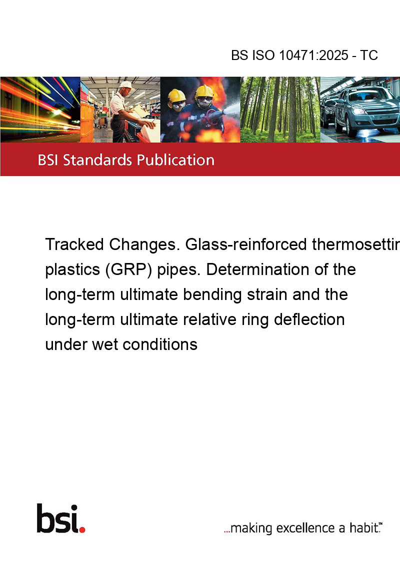 This standard BS ISO 10471:2025 - TC Tracked Changes. Glass-reinforced thermosetting plastics (GRP) pipes. Determination of the long-term ultimate bending strain and the long-term ultimate relative ring deflection under wet conditions is classified in these ICS categories: